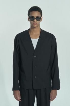 VICTIM / COLLARLESS WOOL JACKET (BLACK)
