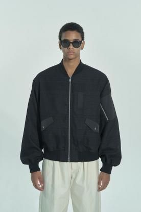 ブロックタイルチェック生地を使用したオーバーサイズのMA-1ジャケット。