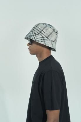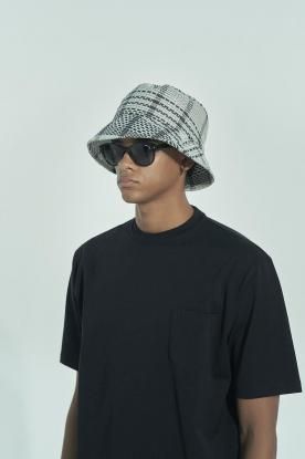 帽子ブランド「CA4LA」と作成した、ブロックタイルチェック生地を使用したバケットハット。凹凸のある独特の表面感と軽量で通気性の良い素材感は、春先のスタイリングに最適です。適度なしなやかさと膨らみを持たせることで、軽やかな印象を表現しています。高さと頭周りを大きめに設計し、バケットハットが苦手な方でも快適に被れるシルエットに。内側のアジャスターで微調整も可能です。 同素材のジャケットとセットで揃えれば統一感のあるスタイリングが完成し、単体でも春の装いに軽やかなアクセントを添えるアイテムです。