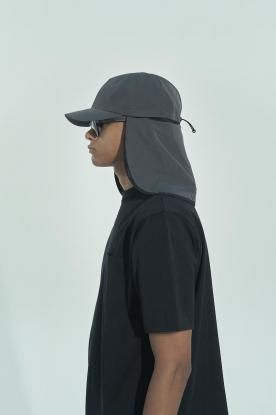 帽子ブランド「CA4LA」と作成したナイロン素材でストレッチ性のある生地を使用した、サンシェードキャップ。接触冷感・シワ防止・速乾性を備え、真夏でも快適に過ごせる仕様です。大きめのシルエットで頭周りにゆとりを持たせ、裾はドローコードで調整可能。さらに着脱可能なサンシェードを備え、日差しの強い日でも安心です。同素材で展開しているベスト、ショーツ、Tシャツ、ロングスリーブとセットアップで揃えれば、統一感のあるスタイリングが楽しめます。機能性とデザイン性を兼ね備えた、大人のための“新しいサマーウェア”シリーズの一品。暑い季節も快適かつスタイリッシュに活躍します。